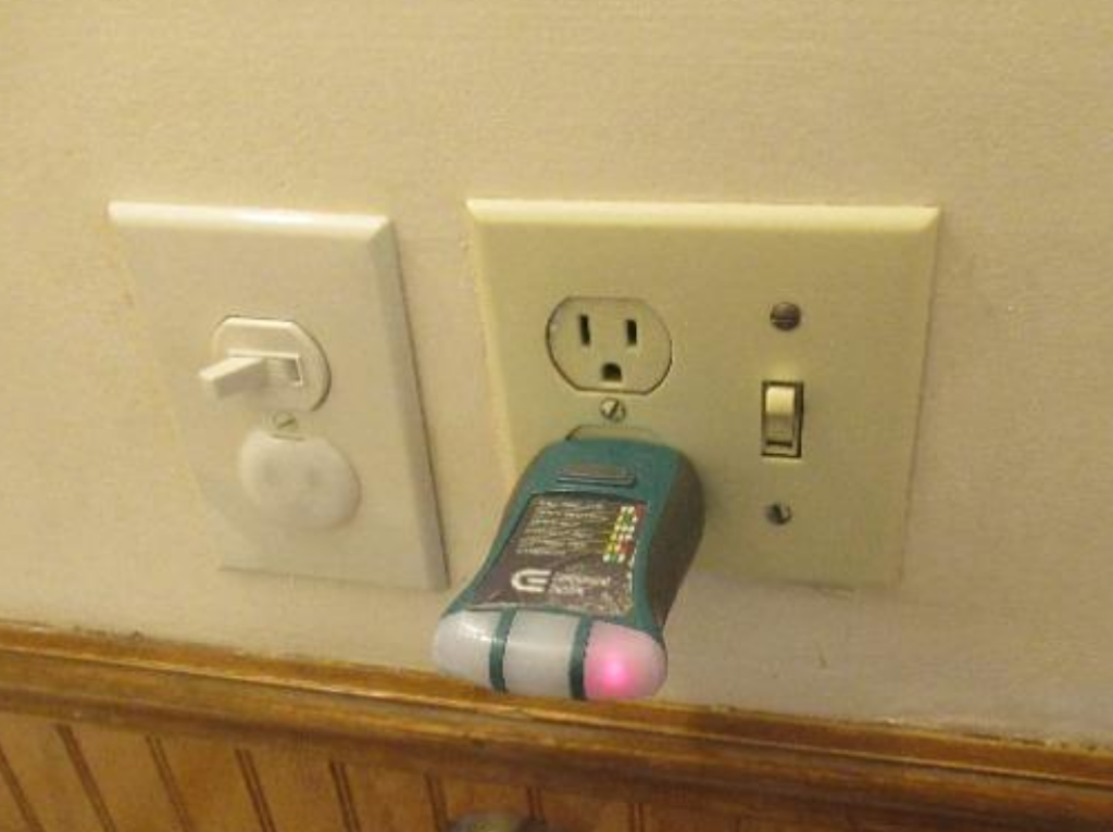 In this bathroom, we had two problems. The inspector failed the socket for not being a GFI (and for no ground wire present). Secondarily, the form, function, and appearance of the switches were unacceptable.
